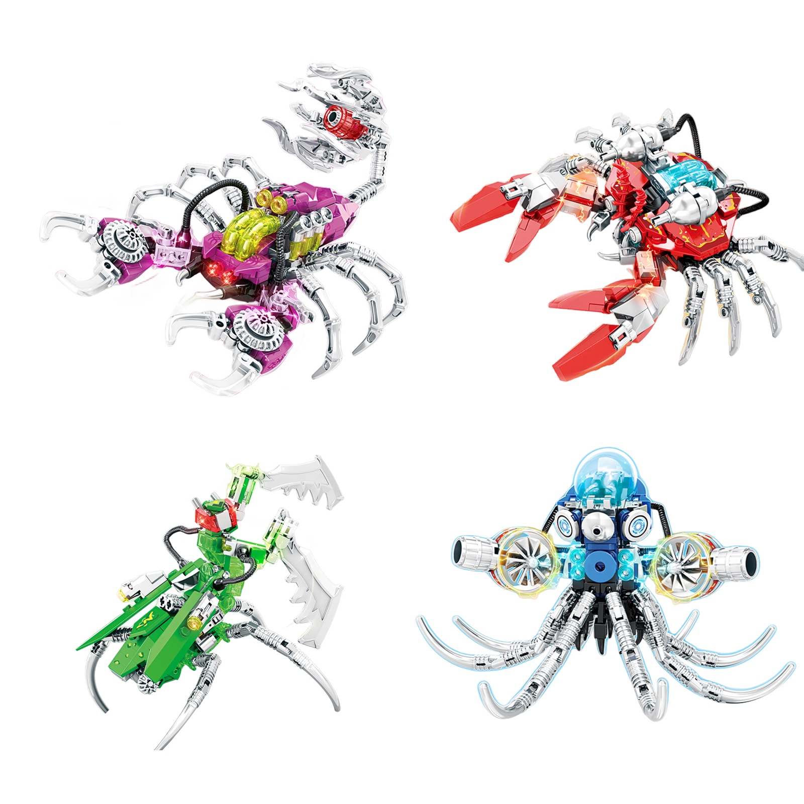 【Creative Design】The set of bug building blocks toys for kids comes with a mantis an octopus, a scorpion, and a crab.